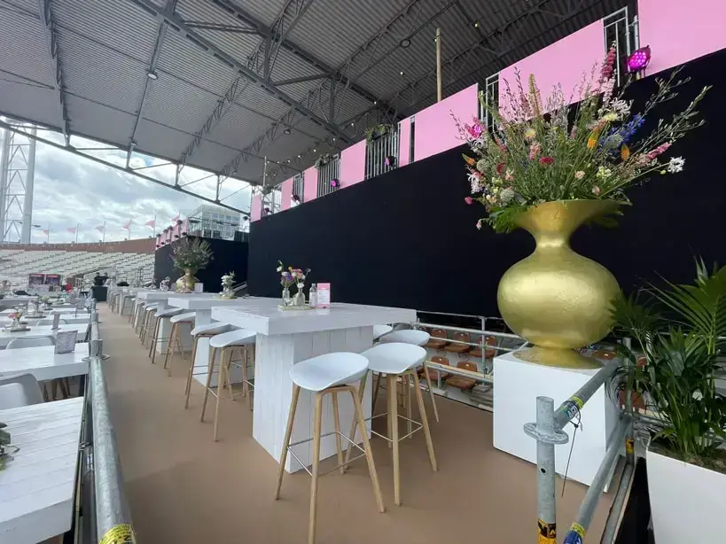 De Amsterdamse Zomer bracht de zon naar het Olympisch Stadion, en wij mochten het volledige VIP-deck omtoveren tot een plek waar beleving, stijl en sfeer samenkwamen. Een bruisend muziekfeest met de beste artiesten van eigen bodem, een Amsterdams Plein vol karakter en een setting die de zomervibes tot leven bracht. Wij zorgden voor het complete concept, de styling en de aankleding, zodat elke VIP-gast de ultieme festivalervaring beleefde in een exclusieve ambiance.