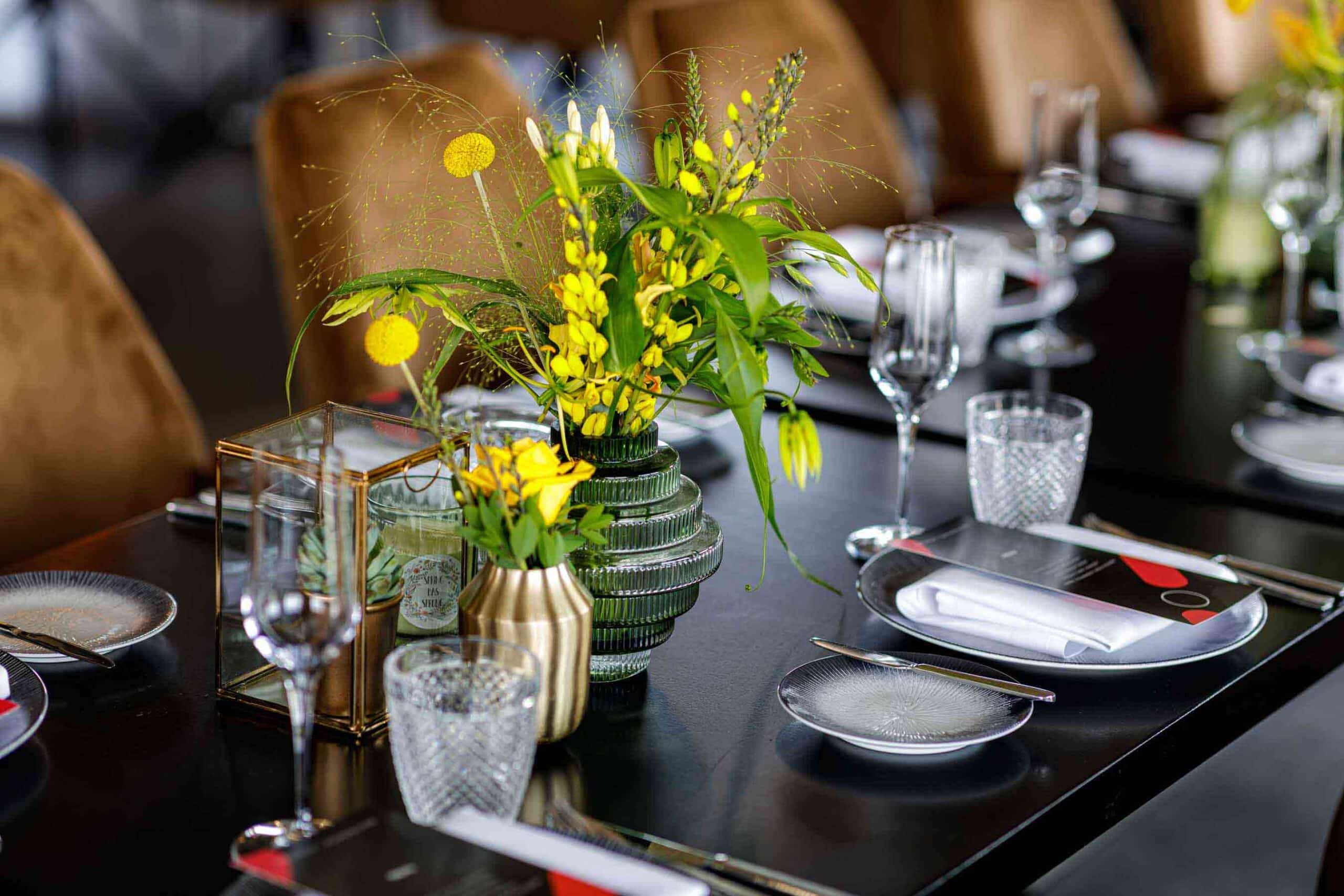 "Met de juiste styling brengen we een ruimte tot leven. Deze wanden met chique details en groen accenten geven precies de sfeer die dit event nodig had."