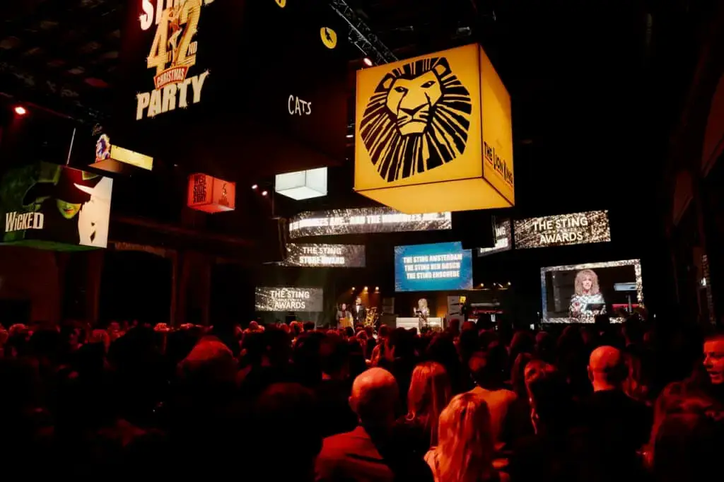 Voor The Sting’s 42nd Christmas Party transformeerden wij De Lichtfabriek met 3D-kubussen die gepersonaliseerde peesdoeken bevatten, perfect afgestemd op het New York-thema. Deze kubussen boden niet alleen een visueel statement, maar creëerden ook een dynamische sfeer door hun lichtgewicht en modulaire opbouw, die zich gemakkelijk aanpaste aan verschillende omgevingen. Zo brachten wij de iconen van Times Square en The Cotton Club tot leven, waardoor de avond een magische, glamourvolle ervaring werd!