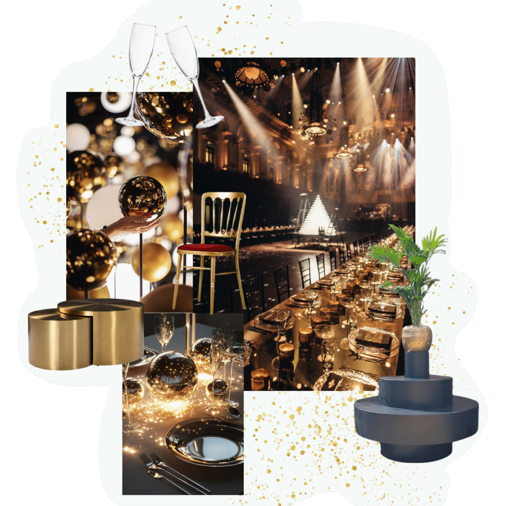 Gouden accenten, sfeervolle verlichting en rijke materialen creëren een exclusieve ambiance waarin gasten zich onderdompelen in een stijlvolle winterse beleving. Van glanzende decoratie tot uitnodigende zitplekken, alles ademt warmte en luxe.